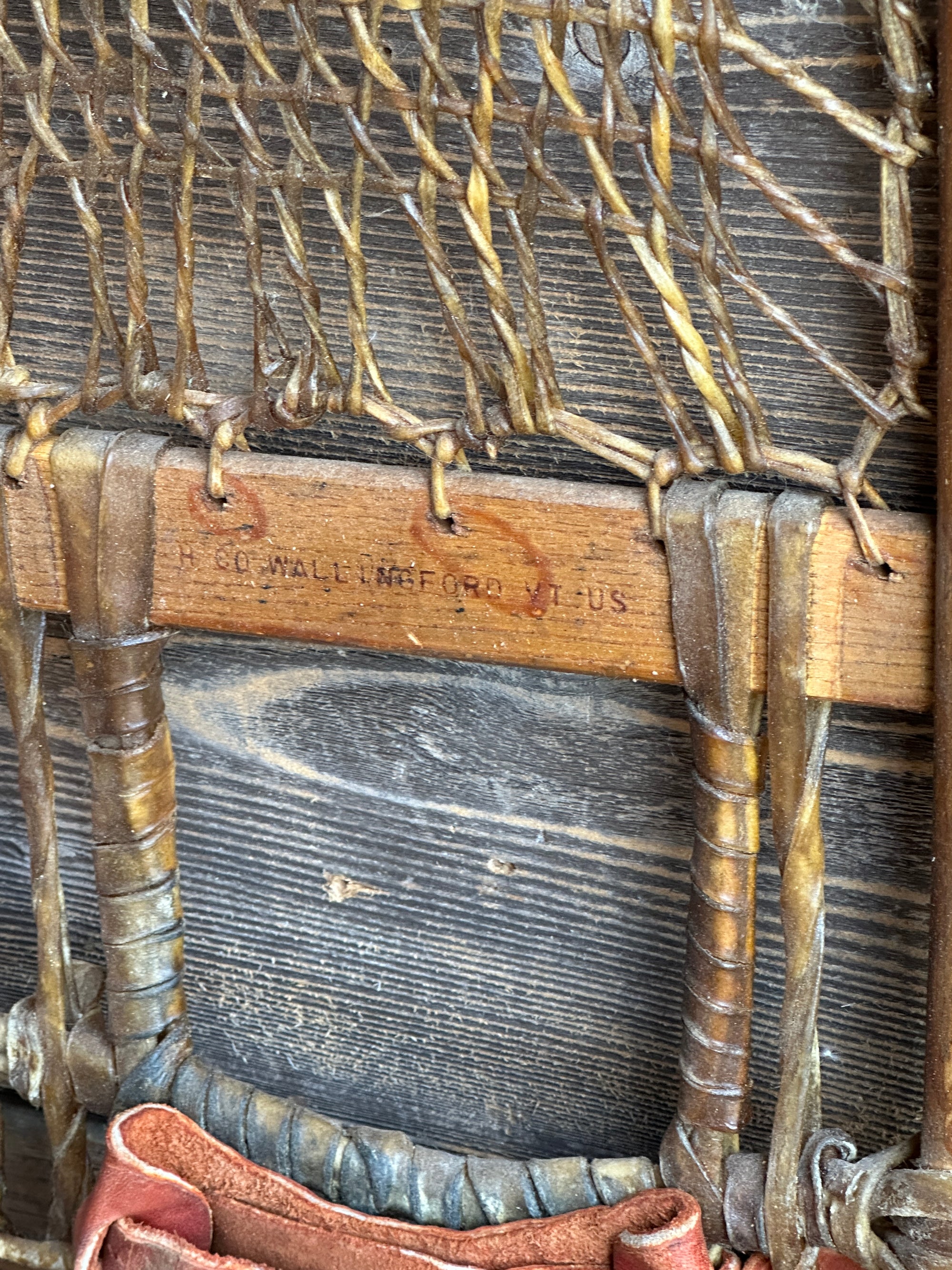 A great set of Abercrombie & Fitch Holding Company 10th Mountain Division Trail Snowshoes. These are marked and made by the AFH, Wallingford VT U.S.A., one of four companies that were producing snowshoes for the war. They are also stamped with the date (1943) and serial numbers. It was common to see "Pairs" with mismatched seriel numbers as troops would pile the snowshoes - and then re-sort during training.  These snowshoes are in very good condition.